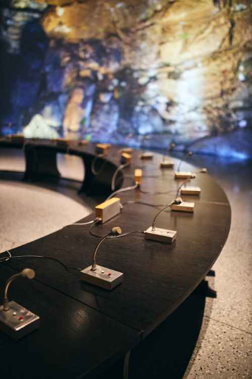 Ten wymiar symboliczny jaskini powraca dziś jako klucz do opowieści o wystawie „Okrągły Stół. Moment przejścia”. Proponujemy go po to, by „wyciąć” Okrągły Stół z bieżących sporów i doraźnych ocen, uwolnić go z politycznej codzienności i spojrzeć na niego z innej perspektywy – głębszej, bardziej refleksyjnej. Symboliczna jaskinia, którą staje się przestrzeń wystawy w Muzeum Historii Polski, jest miejscem ciszy i skupienia. To tutaj mogą wybrzmieć głosy dotąd słabo słyszane lub zagłuszane: opowieści o nadziei i dumie, ale także o rozczarowaniu, stracie i poczuciu krzywdy. W jaskini te narracje nie znoszą się nawzajem – tworzą wielogłos, bez którego nie sposób zrozumieć doświadczenia transformacji ustrojowej.